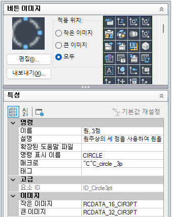 사용자화 탭에 있는 명령 리스트 창에서 이미지를 추가할 명령을 선택합니다.
