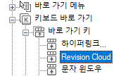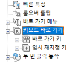 - 사용자화 탭에 있는 <파일 이름>의 사용자화 창에서 키보드 바로 가기 노드를 선택합니다.