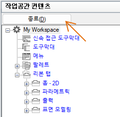 - 작업공간 컨텐츠 창에서 종료를 클릭합니다.