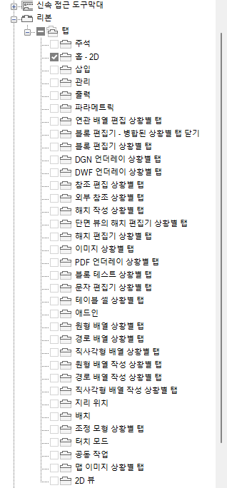 - 작업공간에 추가할 각 리본 탭 옆의 확인란을 클릭합니다.