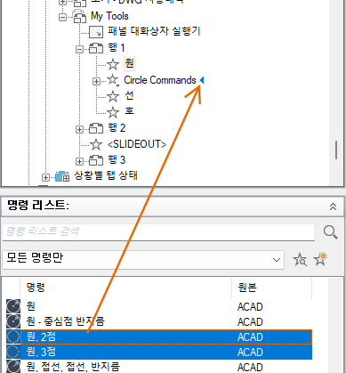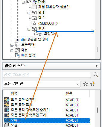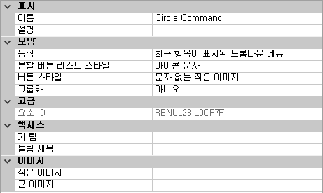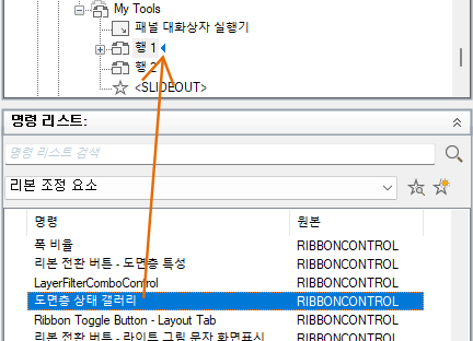명령 리스트에 리본 조정 요소의 리스트만 표시됩니다.