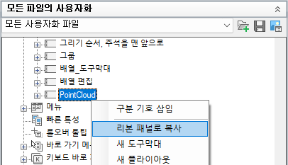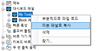 도구막대를 리본 패널로 복사