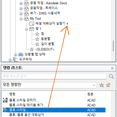 4. 명령 리스트에서 패널의 패널 대화상자 실행기로 명령을 끕니다.