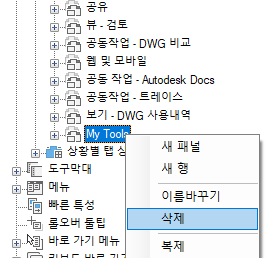 경고: 리본 패널 제거를 명령 취소할 수 있는 방법은 없습니다. 잘못된 리본 패널을 제거한 경우 취소를 클릭하여 사용자 인터페이스 사용자화(CUI) 편집기를 닫고 수행한 변경 사항을 저장하지 않습니다. 이렇게 하면 수행한 다른 모든 변경 사항도 명령 취소됩니다.