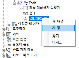 사용자 인터페이스 사용자화(CUI) 편집기 표시