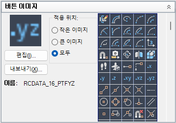 주: 가져오기를 클릭하여 로컬 또는 네트워크 드라이브에 저장된 이미지 파일을 가져온 다음, 버튼 편집기 대화상자에서 편집하고 작업 CUIx 파일에 저장합니다.