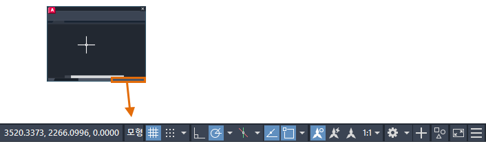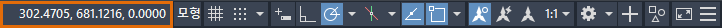 상태막대에서는 가장 자주 사용하는 몇 가지 도면 도구들에 빠르게 액세스할 수 있습니다. 기본 상태막대는 다음과 같습니다.