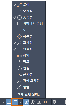| 객체 스냅 | 객체 스냅을 켜거나 끕니다. |