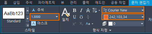 문자 편집기 리본 상황별 탭은 유용한 도구로, 여러 줄 문자 작업을 위한 다양한 옵션이 포함되어 있습니다. 그러나 도구막대를 사용하여 문자의 형식을 지정하려면 다음 중 하나를 수행합니다.