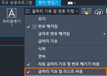 주: 리스트 형식은 글머리 기호 및 리스트 허용 옵션을 선택할 때만 사용할 수 있습니다.