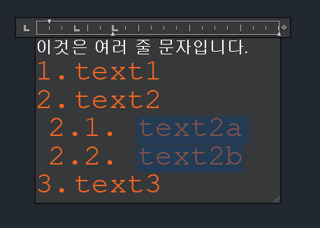 5. 이제 하위 리스트를 작성해 보겠습니다. text2atext2b를 선택합니다.