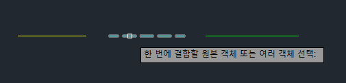 여러 선을 선택할 수 있습니다. 객체가 끝과 끝이 접하지 않거나 동일선상에 있지 않으면 JOIN 명령 수행 시 객체를 무시합니다.