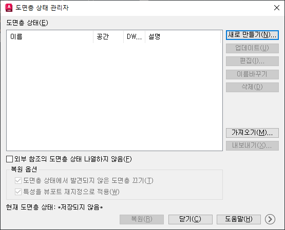 언제든지 저장된 도면층 상태를 복원할 수 있습니다.