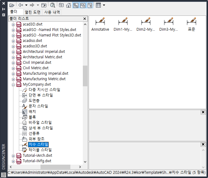 치수 스타일이 현재 도면에 추가됩니다.