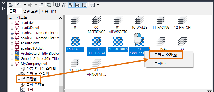 주: DesignCenter에서 도면층 정의를 가져올 수도 있습니다.