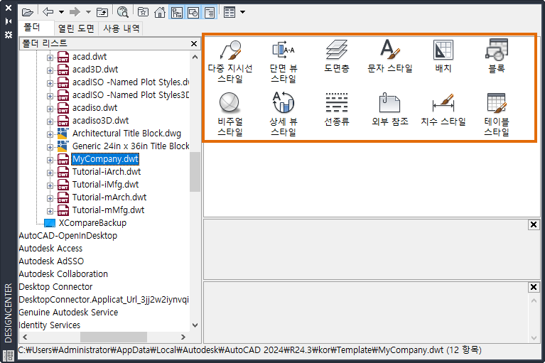 AutoCAD에서는 문자, 치수, 테이블 및 지시선에 대한 스타일을 사용합니다. 도면 템플릿(DWT)에서 스타일을 정의하고 해당 템플릿을 사용하여 새 도면을 시작할 때 스타일을 사용할 수 있는 것이 가장 좋습니다. 그러나 필요한 일부 스타일이 없는 기존 도면이 있을 수 있습니다. 이미 다른 도면에 스타일을 정의했거나 새 스타일로 템플릿을 업데이트한 경우 이러한 스타일을 현재 도면으로 가져올 수 있습니다.