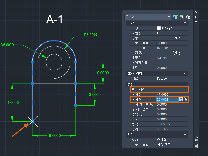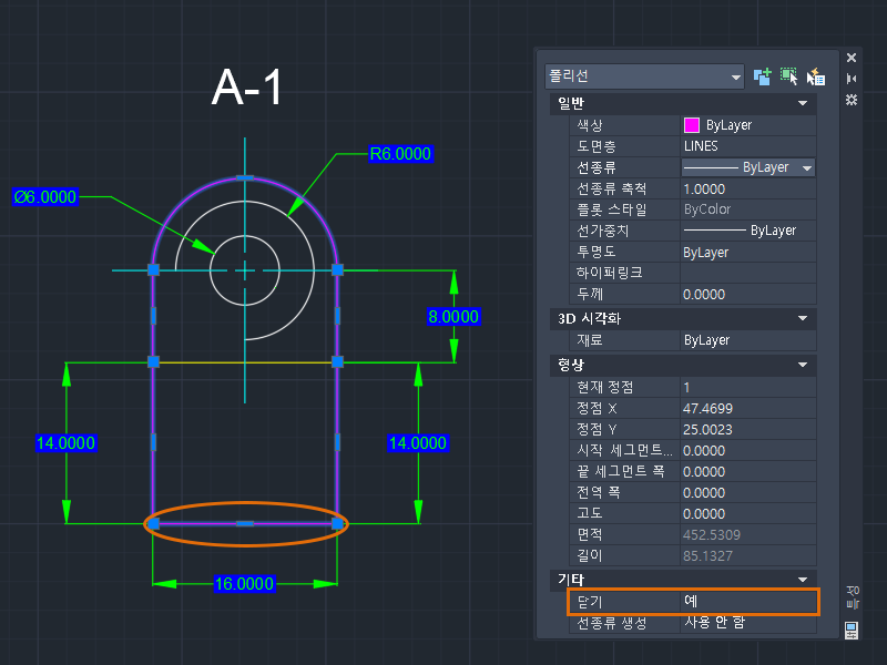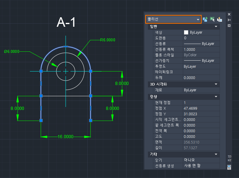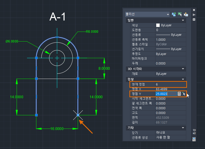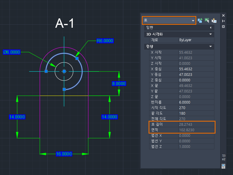 형상 정보를 획득하는 작업은 치수기입 도구를 사용하는 등 여러 가지 방법으로 수행할 수 있습니다. 그러나 형상의 상황 또는 복잡성에 따라 객체의 특성을 본 다음 특성 팔레트에서 값을 변경하는 것이 더 쉬울 수 있습니다.