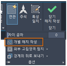 | HPSEPARATE | 여러 개의 닫힌 경계에서 작업할 때 단일 해치 객체를 작성할지 또는 여러 개별 해치 객체를 작성할지를 조정합니다. | 0=단일 해치 객체가 작성됩니다. | 레지스트리 |