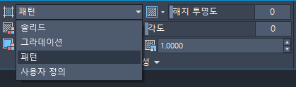 해치 유형 리스트에서 사용할 해치 유형을 선택합니다. 이 연습에서는 패턴을 선택해 보겠습니다.