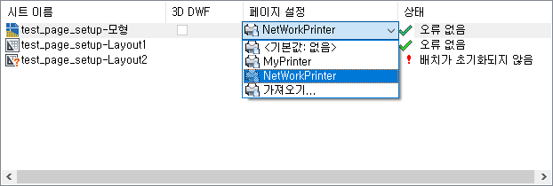 페이지 설정이 포함된 도면이 저장되어 있는지 확인합니다.