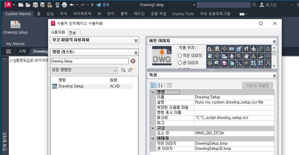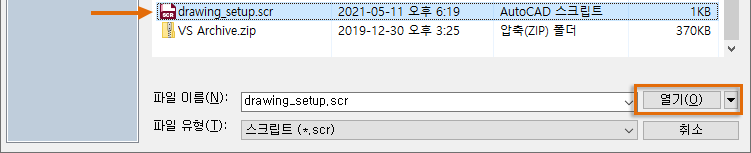 스크립트 파일 선택 대화상자에서 drawing_setup.scr 파일을 찾아 선택합니다.