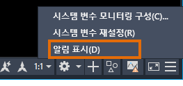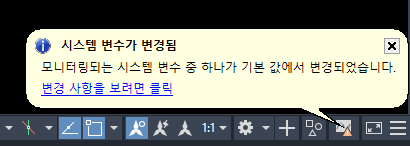 알림은 기본적으로 활성화되어 있습니다. 모니터링 중인 시스템 변수가 변경된 경우 아이콘이 상태막대에 표시됩니다(도면 영역 아래 오른쪽 아래에 위치).