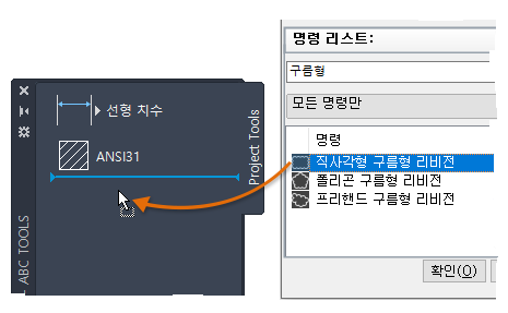 명령 리스트에서 직사각형 구름형 리비전 명령을 도구 팔레트로 끕니다.