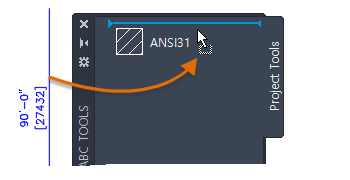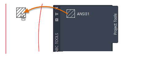 마우스 오른쪽 버튼을 길게 누르고 해치 객체를 도구 팔레트로 끕니다.