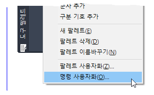 도구 팔레트 창이 표시되면 제목 표시줄 또는 도구 근처의 빈 영역을 마우스 오른쪽 버튼으로 클릭하고 명령 사용자화를 선택합니다.