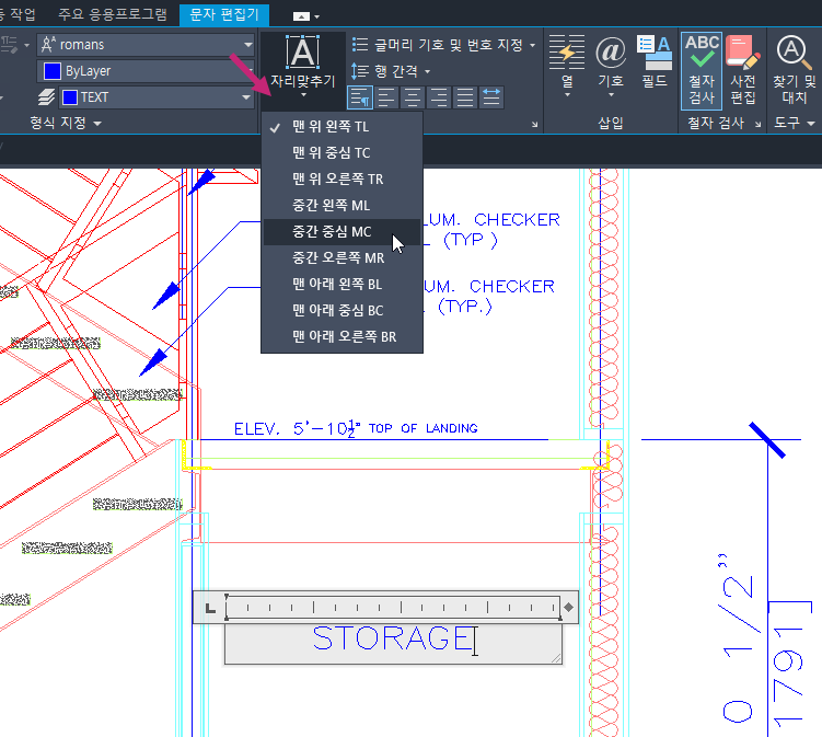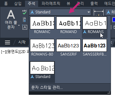 다음 단계에서는 주석 여러 줄 문자(MText)를 작성하는 방법에 대해 설명합니다.