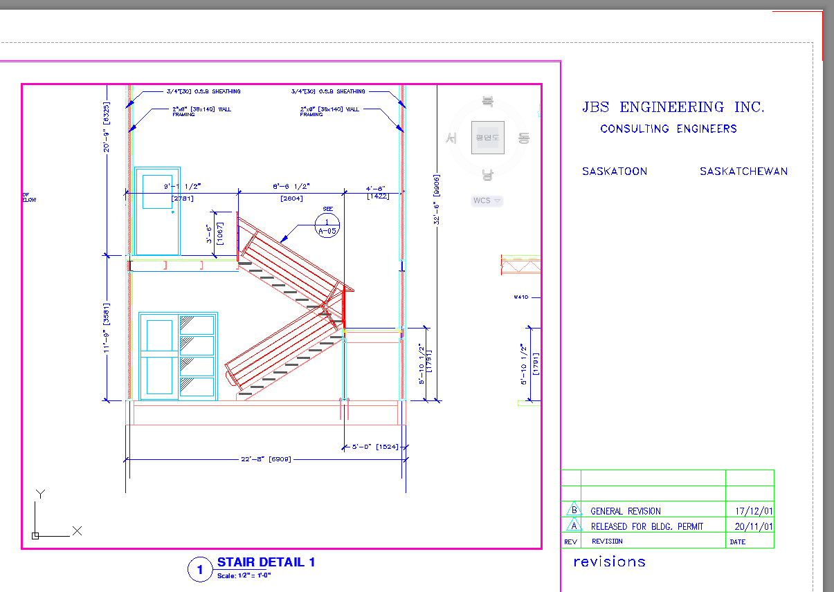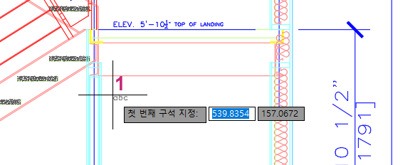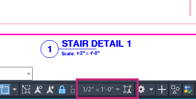 축척이 1/2"=1'-0"으로 지정된 레이블이 STAIR DETAIL 1인 뷰포트에 새 여러 줄 문자 객체가 표시됩니다. 축척이 1/4"=1'-0"으로 지정된 STAIR SECTION 1 뷰포트에는 문자가 표시되지 않습니다.