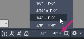 뷰포트의 이전 축척이 복원되면서 주석 축척이 1/2"=1'-0"인 주석 객체가 표시됩니다.