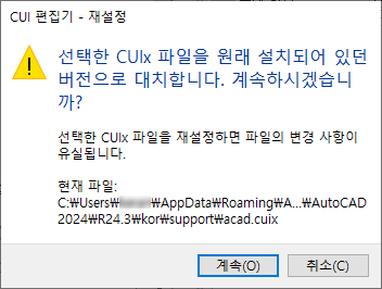 변경 사항이 만족스럽지 않은 경우 CUIx 파일을 이전에 저장된 상태 또는 프로그램 기본값으로 복원할 수 있습니다.