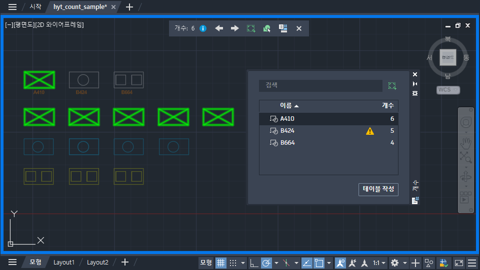 지정된 도면층에 있는 모든 블록의 개수를 계산하려면 다음 단계를 따르십시오.