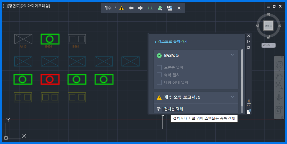개수 기능은 지정된 영역 또는 전체 도면 내에서 블록 및 기타 여러 객체 유형의 인스턴스를 계산하는 빠르고 효율적인 방법을 제공합니다. 이 기능은 계산된 인스턴스를 강조 표시하고 개수 팔레트와 도구막대에 표시되는 상세 정보를 비롯한 시각적 결과를 제공하여 사용자 환경을 향상시킵니다. 개수 기능에는 잠재적 불일치를 별하여 도면의 정확도를 보장하는 오류 보고 기능도 포함되어 있습니다.