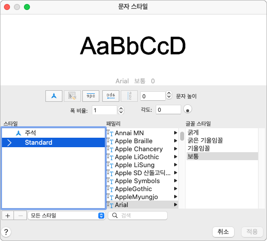 문자 스타일을 작성, 수정 또는 지정합니다.
