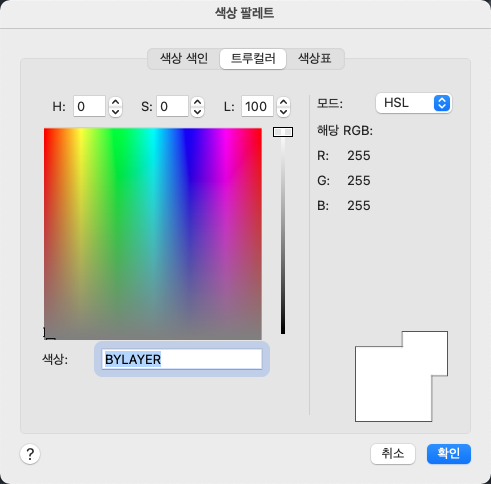 색상을 선택하려면 RGB 색상 모델을 지정합니다. 트루컬러 탭의 옵션은 HSL 또는 RGB 색상 모델 중 어떤 모델이 지정되었는지에 따라 다릅니다.
