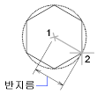 좌표 입력 장치로 반지름을 지정하면 폴리곤의 회전과 크기가 결정됩니다. 값으로 반지름을 지정하면 현재 스냅 회전 각도로 폴리곤의 맨 아래 모서리를 그립니다.