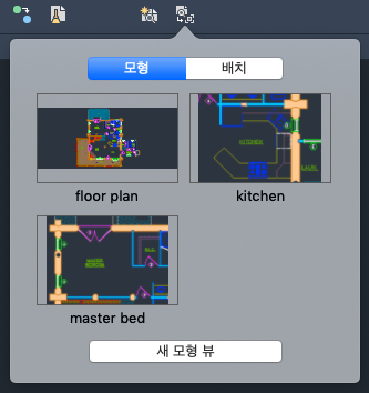 - 모형 공간이 열려 있지 않은 경우 도면 영역 왼쪽 아래 구석에서 모형 뷰를 선택합니다.