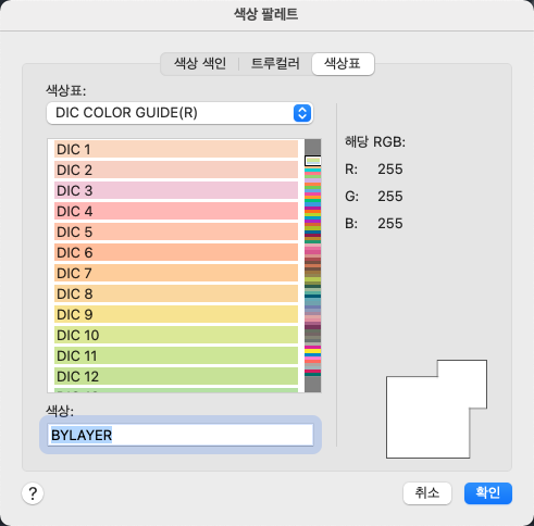 색상을 선택할 때 사용할 색상표를 지정합니다.
