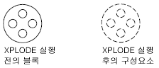 EXPLODE 명령과 완전히 동일하게 복합 객체를 해당 구성요소 객체로 분해합니다.
