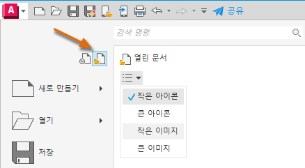 응용프로그램 메뉴의 최근 문서 리스트로 작업하려면
