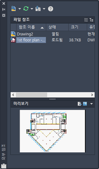 외부 참조 팔레트에서 도면에 부착된 언더레이에 대한 파일별 정보를 볼 수 있습니다. 언더레이를 로드하거나 언로드할 수 있으며 다른 작업을 수행할 수도 있습니다.