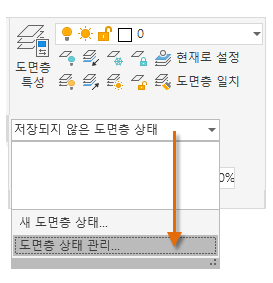 도면층 상태 관리자를 사용하여 도면층 상태 작성, 편집, 이름바꾸기, 제거 및 복원을 수행합니다.