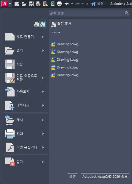 응용프로그램에서 열려 있는 파일 리스트를 봅니다.