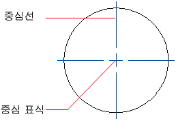 치수 선 스타일 설정에 따라 중심 표식 및 중심선이 지름 및 반지름 치수에 대해 자동으로 생성됩니다. 중심 표식과 중심선은 치수 선이 원 또는 호의 외부에 있을 경우에만 작성됩니다. DIMCENTER 명령으로 중심선 및 중심 표식을 직접 작성할 수 있습니다.