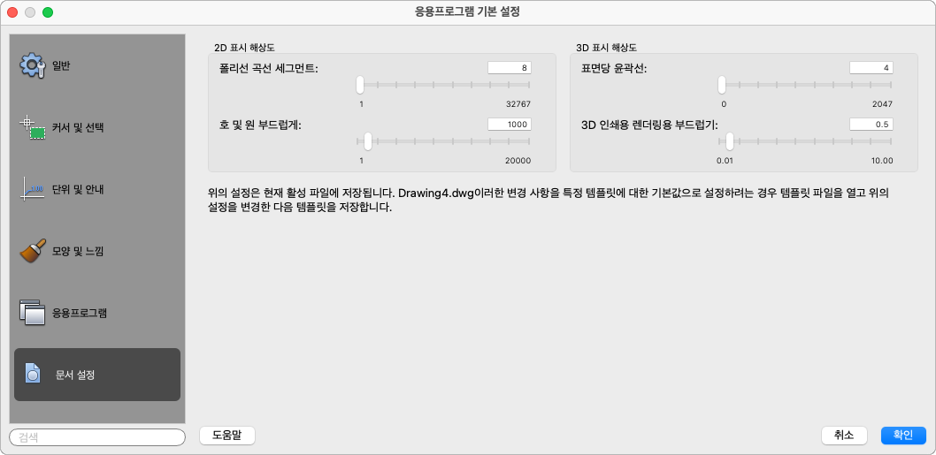 메뉴: AutoCAD 2026 > 기본 설정