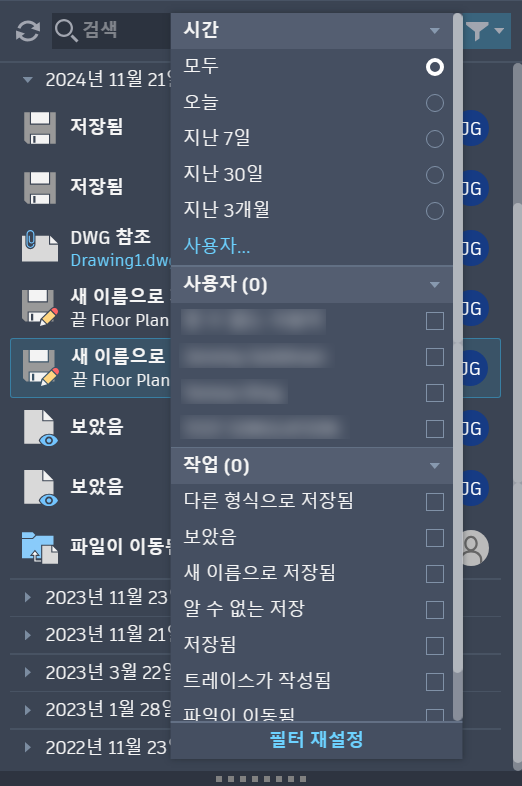 - 외부 참조 활동 타일의 도면 이름을 클릭하면 파일 열기 작업을 수행할 수 있도록 했습니다.