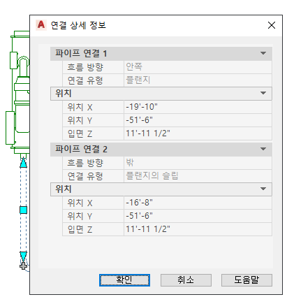 파이프 연결 상세 정보의 예