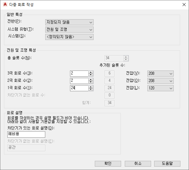 주: 새 회로를 추가한 후 도면에서 분전반 구성도를 업데이트합니다. 자세한 내용은 분전반 구성도 업데이트를 참고하십시오.